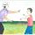 Na beira do rio, sob uma árvore, um homem cozinha e uma fogueira. No rio, um homem em uma canoa.