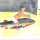 Um homem está com as mão na cabeça do peixe pirarara grande, o homem criminoso sai de cima do peixe.